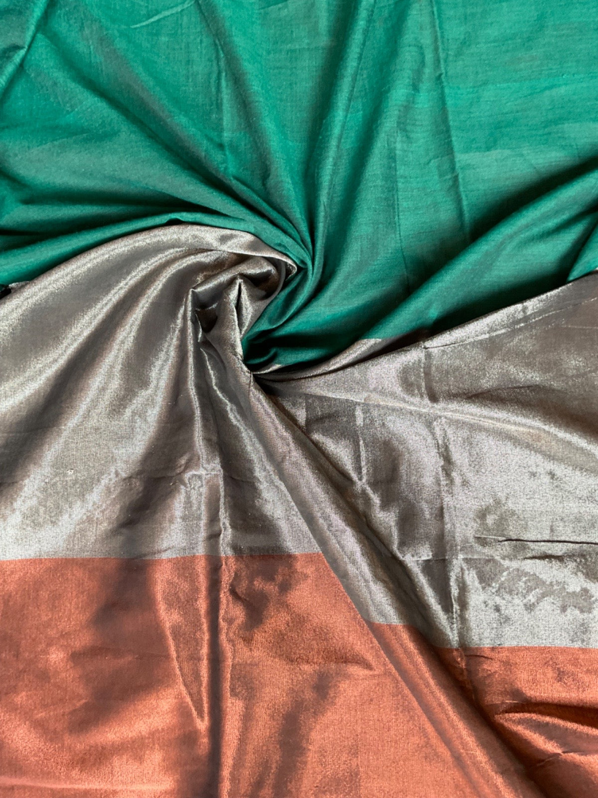 This Pure Handloom Lenin Cotton Saree with silver copper tissue palla is expertly crafted and uniquely designed to provide a comfortable and stylish wear for any occasion. Made from pure handloom material, this saree offers a delicate and breathable feel, perfect for any weather. Elevate your wardrobe with this timeless piece.